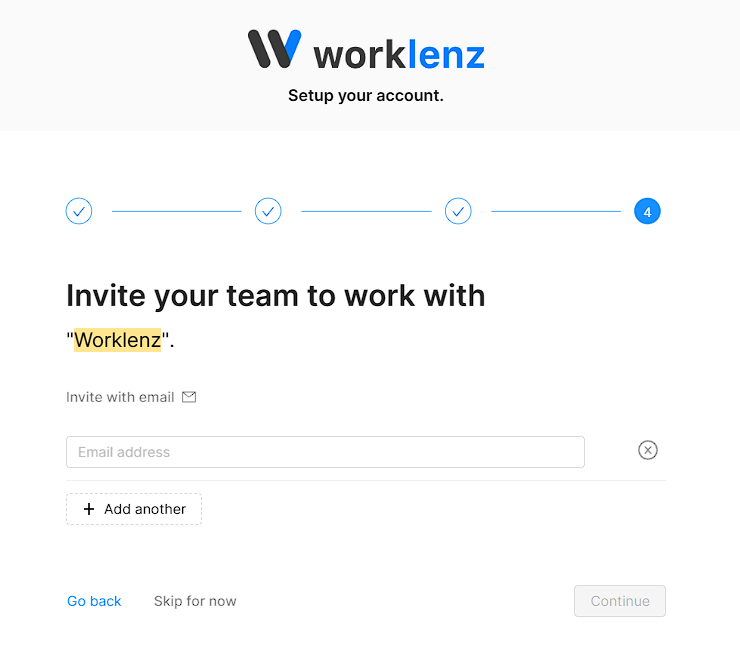 Using email address have to invite multiple team members using add another button or skip this step using skip button