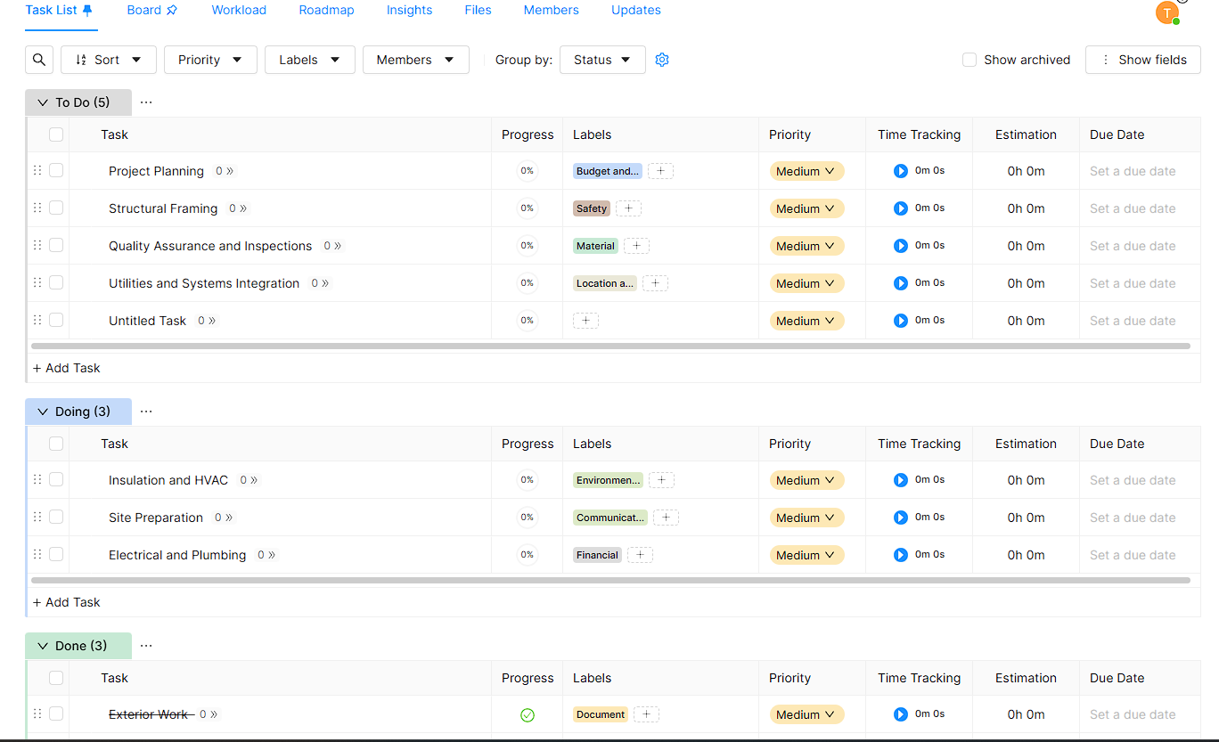 - You can select all tasks short by the phase, using the Group By dropdown list.