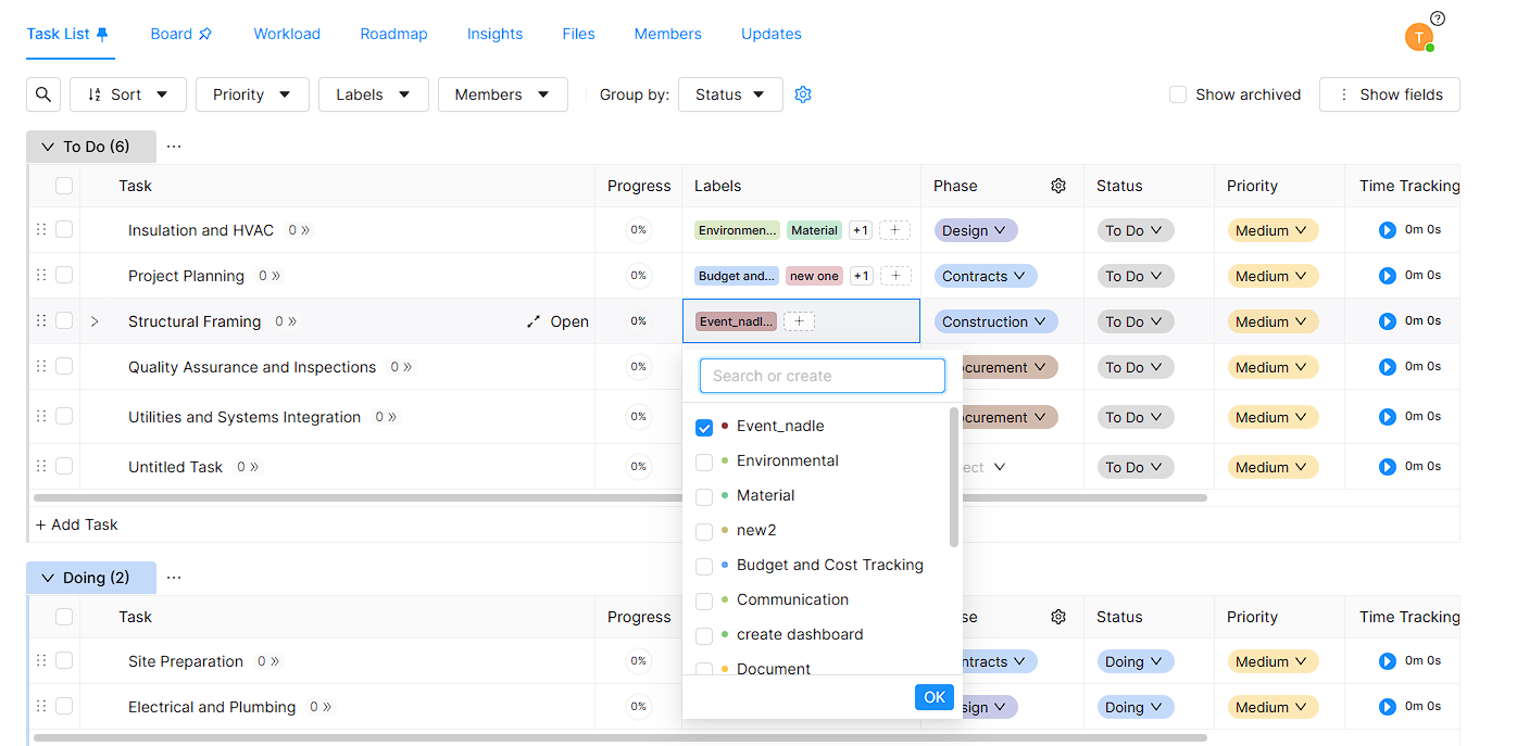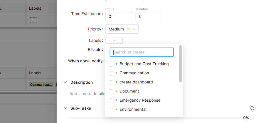 After you add labels, It comes to the Task List interface and the new labels can be seen in all label dropdowns. You have to easily select your new label at any time.