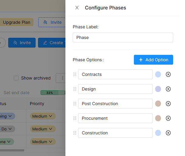 - Or if you want to add a new phase, you can click the Add Option button.