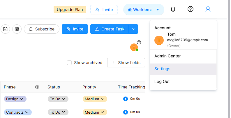 - Click Settings option.