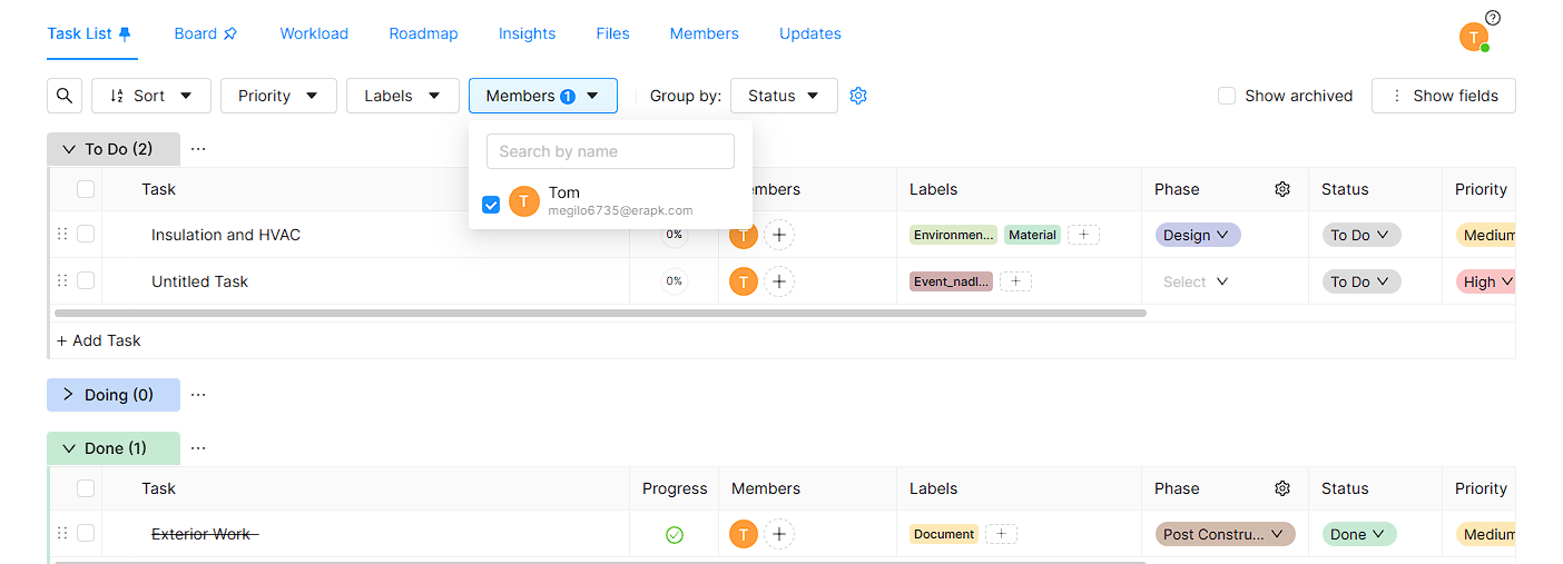 - Task list will automatically filter your task according to selected members.