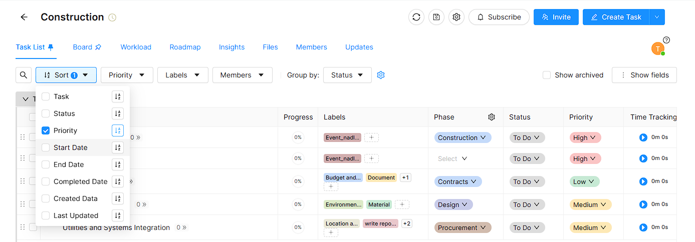 In worklenz workplace you can have manage your tasks organize well. In the Task list is show all task of you crated. Also it gives to customize task list according to several filters and groups.