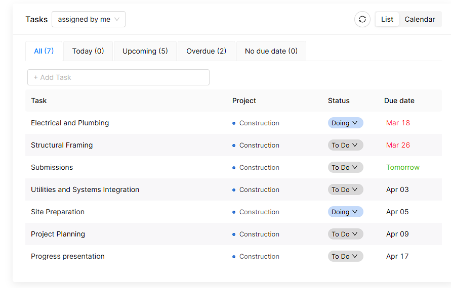 - List View - Displays your tasks arranged in a list format for easy scanning.