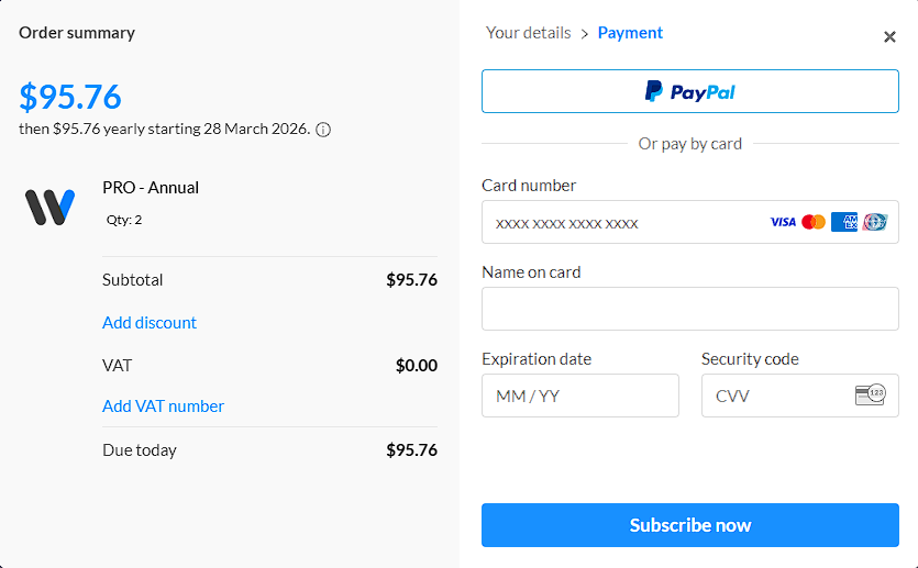You will then be directed to the payment gateway. Enter your card details and click Subscribe Now to activate your new plan.